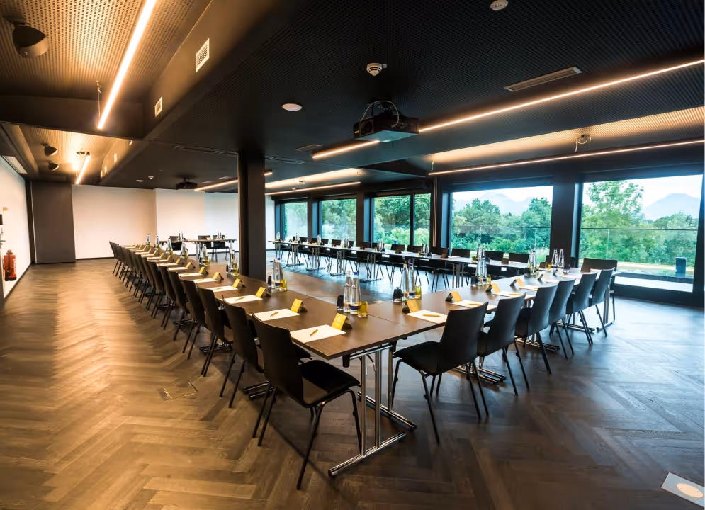 Unsere Konferenzräume bieten den idealen Rahmen für Tagungen, Workshops oder festliche Anlässe. Sie bieten Platz für bis zu 200 Personen und sind mit modernster Technik ausgestattet.